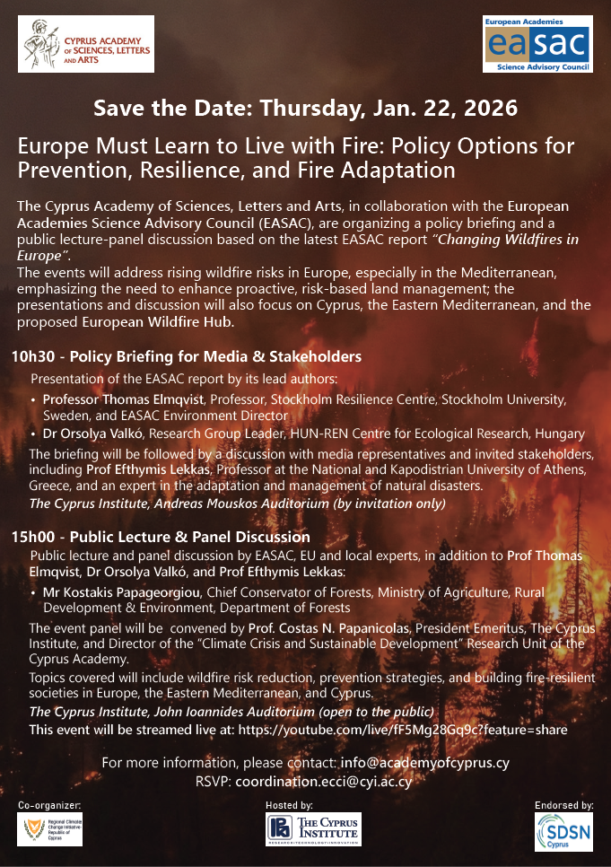 Europe Must Learn to Live with Fire: Policy Options for Prevention, Resilience, and Fire Adaptation, 22 January 2026